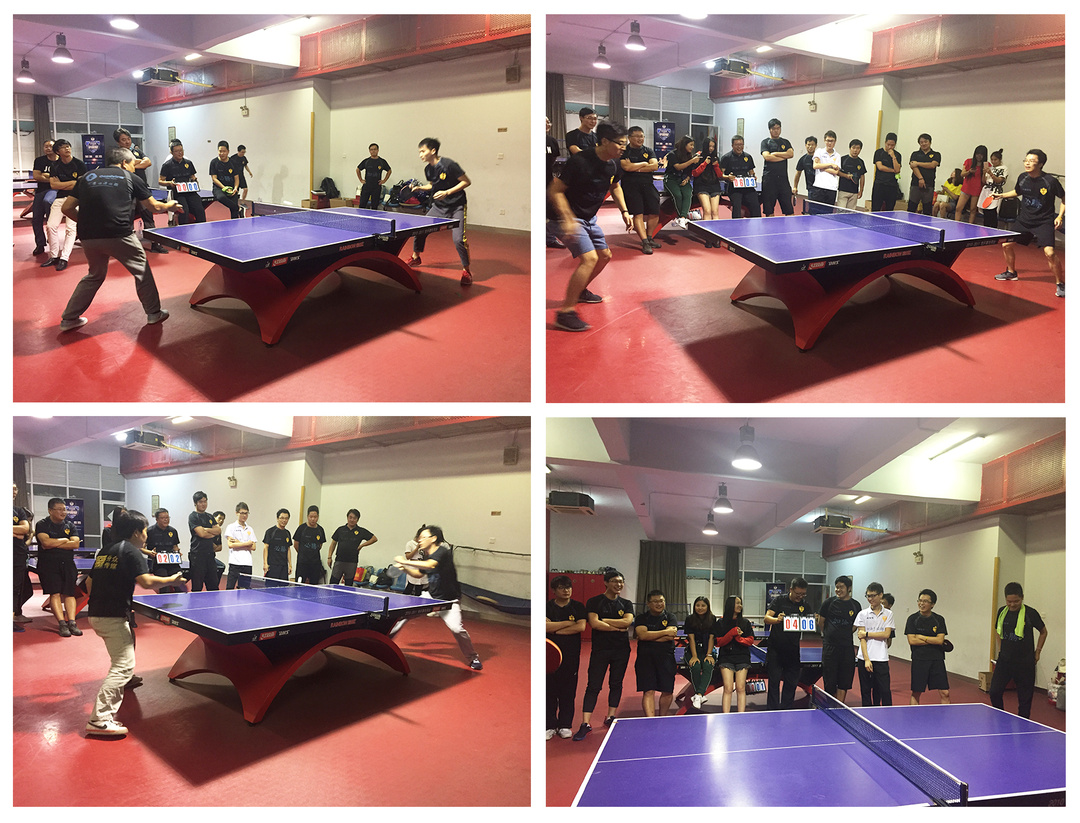 比賽正式開始,萬萬沒想到平時認真嚴謹的程序猿們還有如此活躍的一面,大家打的都很專業,都直逼職業運動員的水準了。比賽中有一位來自上海仙視的女生參賽隊員,作為唯一一位女生參賽隊員,英姿颯爽的身姿讓場外的我們好生羨慕啊。 比賽上半場在經過小組淘汰賽、復活賽和半決賽暫告一段落,短暫休息之后,開始季軍爭奪賽和冠亞軍爭奪賽。