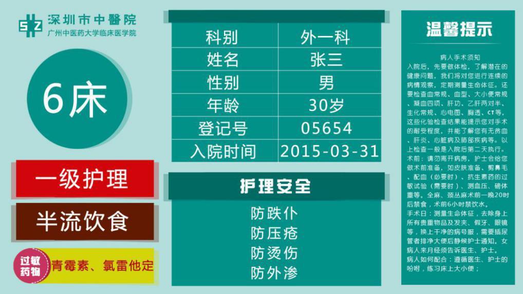 基于醫護管理系統,對接HIS分診系統自動抽取病人相關信息,并精準、實時分發至床頭醫護終端。醫護人員通過電子床頭卡獲知病人最新狀態,制定相關醫護療程。