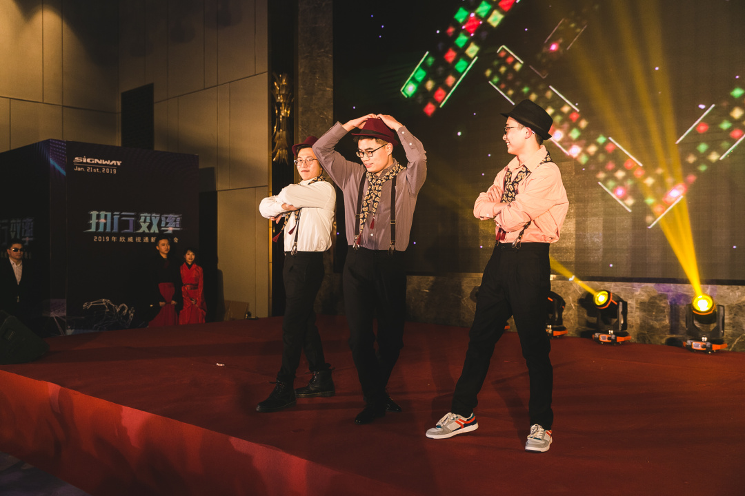 欣威年會最不缺的就是創意,燈光舞、搞笑小人舞、黑白影子舞,只有你想不到的節目,沒有欣威人演繹不出的精彩。更有神秘生日會環節,嘉賓、員工及家屬同場歡樂。